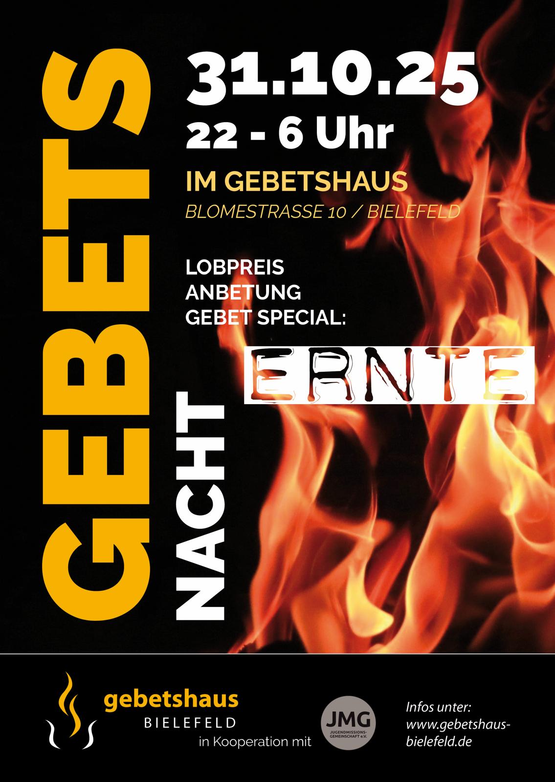 Herzlich möchten wir euch zu einer Gebetsnacht im Gebetshaus am Freitag, den 31. Oktober einladen!